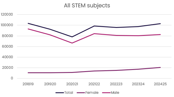 This release summarises the key themes, subject-level trends and apprenticeship uptake across STEM subjects and levels for the 2024 – 2025 cycle.