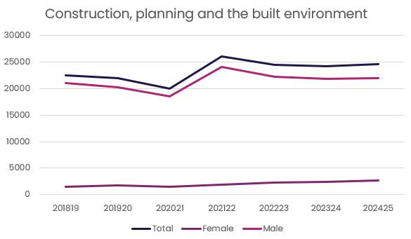 - In 2024 – 25, we saw 12,570 female starts compared to 4,190 in 2018 – 2019 – this is a 200% increase in six years. Male starts have only seen a 13% increase across this same period.