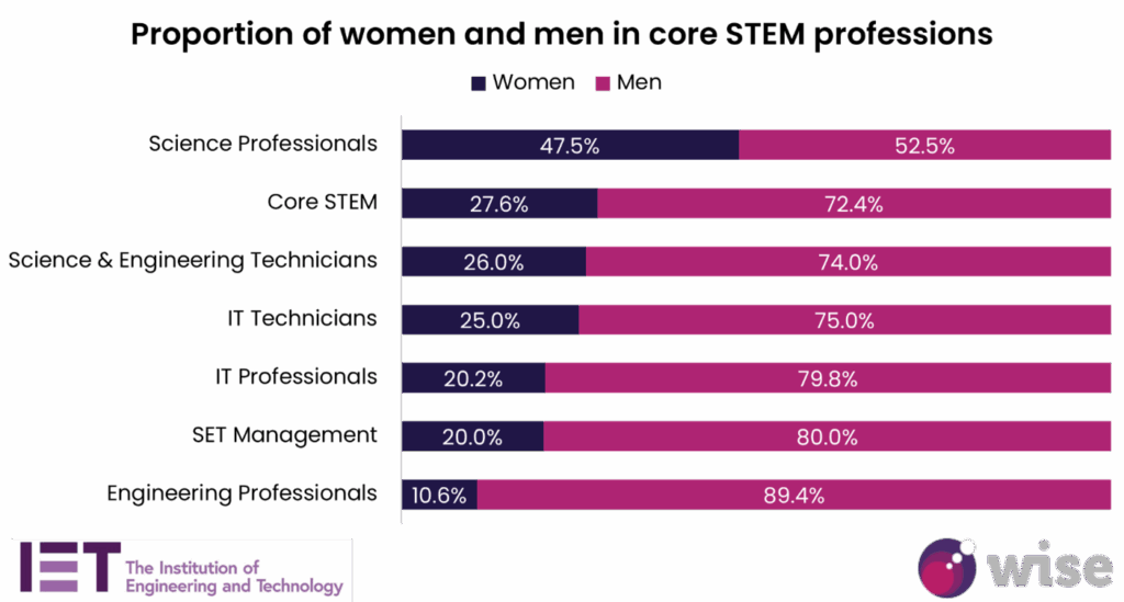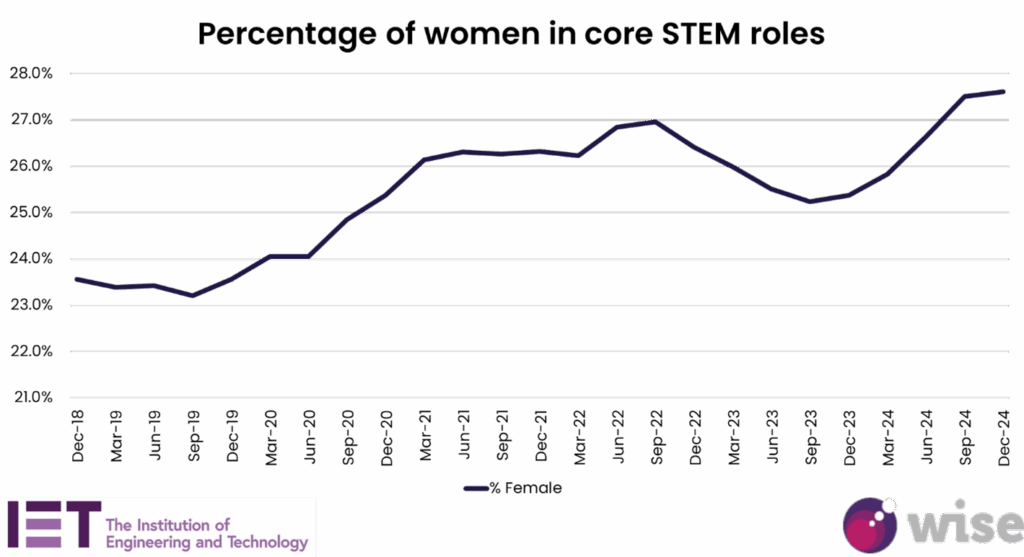 The latest statistics for women in STEM roles are promising with increased representation in most areas. As of December 2024, women make up 27.6% of the core STEM workforce which represents over 1.4 million women across the UK – an all-time high.
